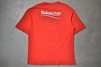 Balenciaga - 2018 - Political Campaign Tee Tagged Size: XS Condition: 8.5/10 Flaws: Cut Neck Tag, Uneven Shade (Spots), 3 Pinholes Material: 100% Cotton Made in: Portugal Dimensions Length: 27.5 Width: 21.5 Shoulder: 21.5 Sleeve: 10 TAKE NOTE: 1. Be mindful that this piece has led a previous life, and may tell its story through minor imperfection. 2. See measurements written in the description 3. In some rare cases, customs duty may be charged, but in that case, please pay by yourself Courier: DHL Express ONLY From: Philippines ETA: 2-4 days from the date of shipment