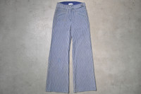 Chanel - Cruise 2008 - Pinstripe Denim Pants Tagged Size: 38 Condition: 9/10 Flaws: Overall Light Yellow Spots Material: 95% Cotton, 5% Polyurethane Zipper: Riri Made in: Italy Dimensions Waist: 28 Inseam: 31 Crotch: 13 Thigh: 11 Leg Opening: 11.25 TAKE NOTE: 1. Be mindful that this piece has led a previous life, and may tell its story through minor imperfection. 2. See measurements written in the description 3. In some rare cases, customs duty may be charged, but in that case, please pay by yourself Courier: DHL Express ONLY From: Philippines ETA: 2-4 days from the date of shipment