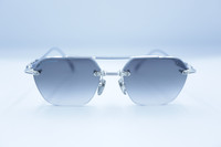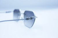 Chrome Hearts - Stinger features silver titanium frame with rimless design, titanium brow bar, custom nose pads, matte gray titanium temples with sterling silver Chrome Hearts emblem decoration, and gradient grey lens with 100% UV protection. Tagged Size: 58 18-147 Condition: Rank A Material: .925 Sterling Silver Made in: Japan TAKE NOTE: 1. Be mindful that this piece has led a previous life, and may tell its story through minor imperfection. 2. See measurements written in the description 3. In some rare cases, customs duty may be charged, but in that case, please pay by yourself Courier: DHL Express ONLY From: Philippines ETA: 2-4 days from the date of shipment