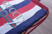 Gucci - Pre-Fall 2018 - Sylvie Stripe Drawstring Bag The Sylvie Stripe backpack features a canvas body, flat leather top handles, rolled back straps, and a top drawstring closure. Tagged Size: M Condition: Rank A Flaws: Minor Cotton Piling, Minor Stain at Front Material: Canvas Made in: Italy SRP: $890 Dimensions Height: 17.5 Width: 15 TAKE NOTE: 1. Be mindful that this piece has led a previous life, and may tell its story through minor imperfection. 2. See measurements written in the description 3. In some rare cases, customs duty may be charged, but in that case, please pay by yourself Courier: DHL Express ONLY From: Philippines ETA: 2-4 days from the date of shipment