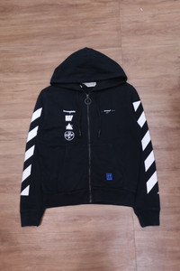 Off-White - Pre-Fall 2019 - Mariana De Silva Hoodie Tagged Size: S Condition: 8.5/10 Flaws: Distressing on Hood, 2 Pinholes Behind Shoulder Area, 1 Damage on Lace Tip, Overall Minor Fading Material: 100% Cotton Zipper: Raccagni Made in: Portugal Dimensions Length: 25 Width: 22.5 Shoulder: 19 Sleeve: 26.5 TAKE NOTE: 1. Be mindful that this piece has led a previous life, and may tell its story through minor imperfection. 2. See measurements written in the description 3. In some rare cases, customs duty may be charged, but in that case, please pay by yourself Courier: DHL Express ONLY From: Philippines ETA: 2-4 days from the date of shipment