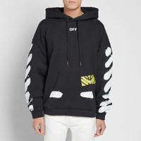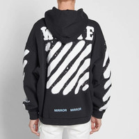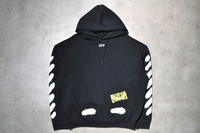 Off-White - S/S 17 - Diag Spray Hoodie Virgil Abloh’s Off White are renowned for incorporating premium fabrication into their unique streetwear designs, epitomised by this Diagonals Spray Hoody. A unique variant of a sporting classic updated for a contemporary audience, this oversized silhouette boasts gathered cuffs and hem, a drawcord-adjustable hood and finished with an abundance of distinctive branding throughout. *Printed Branding Throughout *Oversized Silhouette *Diagonals Spray Paint Branding to Back *Drawcord-Adjustable Hood Tagged Size: M Condition: 9/10 Flaws: 2 Holes at Front Material: 100% Cotton Made in: Portugal SRP: 335 British Pounds Dimensions Length: 28 Width: 29.5 Shoulder: 28 Sleeve: 25.5 TAKE NOTE: 1. Be mindful that this piece has led a previous life, and may tell its story through minor imperfection. 2. See measurements written in the description 3. In some rare cases, customs duty may be charged, but in that case, please pay by yourself Courier: DHL Express ONLY From: Philippines ETA: 2-4 days from the date of shipment