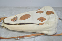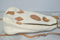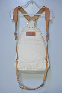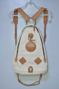 Yuketen - Triangle Backpack The triangular backpack is an exquisite combination of thick canvas material and tanned leather, accented with white stitching. *18 Oz Canvas *Vegetable-Tanned Leather Straps, Patch and Bottom *Zip-Around Closure *Interior Organizational Pocket *Copper Rivets Tagged Size: S Condition: 9/10 Flaws: Minor Dirts and Yellowing of Canvas, 1 Missing Pulltab Zipper: YKK Made in: U.S.A. SRP: $440 Dimensions Height: 15 Width: 11 Depth: 5.5 TAKE NOTE: 1. Be mindful that this piece has led a previous life, and may tell its story through minor imperfection. 2. See measurements written in the description 3. In some rare cases, customs duty may be charged, but in that case, please pay by yourself Courier: DHL Express ONLY From: Philippines ETA: 2-4 days from the date of shipment
