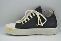 Rick Owens DRKSHDW - S/S 20 - Sombra Oscura Ramones Low Rick Owens gets in touch with his ancestral roots for SS20, adding a touch of Mexican flair to his signature silhouettes – including the DRKSHDW low top sneaker. Inspired by a classic all-American style, this pair sits a premium leather toe cap alongside durable canvas and is finished with the Spanish translation of Dark Shadow – ‘SOMBRA OSCURA’ – on the left heel. *Canvas Uppers *Leather Toe Cap *Rubber Outsole Tagged Size: 39 Condition: 8.5/10 Flaws: Signs of Usage (Scuffs on Toe, Heeldrags), Yellow Spot on 1 Sole Made in: Italy SRP: 61,000 Japanese Yen TAKE NOTE: 1. Be mindful that this piece has led a previous life, and may tell its story through minor imperfection. 2. See measurements written in the description 3. In some rare cases, customs duty may be charged, but in that case, please pay by yourself Courier: DHL Express ONLY From: Philippines ETA: 2-4 days from the date of shipment