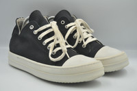 Rick Owens DRKSHDW - S/S 20 - Sombra Oscura Ramones Low Rick Owens gets in touch with his ancestral roots for SS20, adding a touch of Mexican flair to his signature silhouettes – including the DRKSHDW low top sneaker. Inspired by a classic all-American style, this pair sits a premium leather toe cap alongside durable canvas and is finished with the Spanish translation of Dark Shadow – ‘SOMBRA OSCURA’ – on the left heel. *Canvas Uppers *Leather Toe Cap *Rubber Outsole Tagged Size: 39 Condition: 8.5/10 Flaws: Signs of Usage (Scuffs on Toe, Heeldrags), Yellow Spot on 1 Sole Made in: Italy SRP: 61,000 Japanese Yen TAKE NOTE: 1. Be mindful that this piece has led a previous life, and may tell its story through minor imperfection. 2. See measurements written in the description 3. In some rare cases, customs duty may be charged, but in that case, please pay by yourself Courier: DHL Express ONLY From: Philippines ETA: 2-4 days from the date of shipment