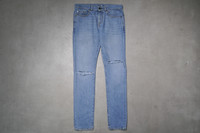Saint Laurent Paris - S/S 18 - D02 Distressed Denim Jean Color: Dirty Vintage Blue Tagged Size: 31 Condition: 9.5/10 Flaws: Small Yellow Stain Material: 100% Cotton Made in: Italy SRP: 420 British Pounds Dimensions Waist: 35 Inseam: 34 Crotch: 11.5 Thigh: 11.5 Leg Opening: 6.5 TAKE NOTE: 1. Be mindful that this piece has led a previous life, and may tell its story through minor imperfection. 2. See measurements written in the description 3. In some rare cases, customs duty may be charged, but in that case, please pay by yourself Courier: DHL Express ONLY From: Philippines ETA: 2-4 days from the date of shipment