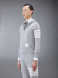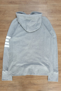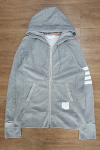Thom Browne - Classic Loopback 4-Bar Full-Zip Hoodie Leisurewear made artful. Our Classic Loopback 4-Bar Full Zip Hoodie is adorned with our iconic 4-Bar detailing emulated after varsity stripes. *Brass 2-Way Zip Closure *Integrated Hood with Stripe Trim *4-bar Stripe Detail at Left Sleeve *Kangaroo Front Pocket with Name Tag Applique Tagged Size: 5 (*see dimensions below) Condition: 9/10 Flaws: Missing 1 Puller on Zip, Fading of Patch Tag at Front Material: 100% Cotton Zipper: Riri Made in: Japan SRP: 915 Euros Dimensions Length: 28 Width: 22 TAKE NOTE: 1. Be mindful that this piece has led a previous life, and may tell its story through minor imperfection. 2. See measurements written in the description 3. In some rare cases, customs duty may be charged, but in that case, please pay by yourself Courier: DHL Express ONLY From: Philippines ETA: 2-4 days from the date of shipment