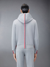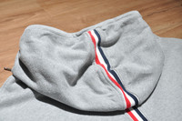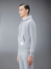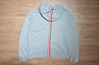 Thom Browne - Classic Loopback Stripe Hoodie Leisurewear made artful. Our Classic Loopback Stripe Hoodie is adorned with our iconic name tag applique at front and striped grosgrain trim at the back. *Drawstring Hood *4-Bar Stripe Detail at Left Sleeve *Kangaroo Front Pocket *Name Tag Applique *Buttoned Side Vents with Signature Striped Grosgrain Trim *Stripe Through Center Back and Hood Tagged Size: 4 Condition: 8.5/10 Flaws: Minor Stains, Minor Bleeding, Minor Cotton Piling, Missing 1 Button(Has Replacement Button on Side Tags) Material: 100% Cotton Made in: Italy SRP: $650 Dimensions Length: 25 Width: 24.5 Shoulder: 22.5 Sleeve: 25.5 TAKE NOTE: 1. Be mindful that this piece has led a previous life, and may tell its story through minor imperfection. 2. See measurements written in the description 3. In some rare cases, customs duty may be charged, but in that case, please pay by yourself Courier: DHL Express ONLY From: Philippines ETA: 2-4 days from the date of shipment