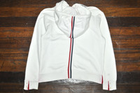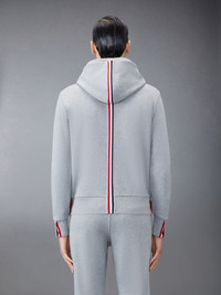 Thom Browne - Classic Loopback Stripe Hoodie Leisurewear made artful. Our Classic Loopback Stripe Hoodie is adorned with our iconic name tag applique at front and striped grosgrain trim at the back. *Drawstring Hood *4-Bar Stripe Detail at Left Sleeve *Kangaroo Front Pocket *Name Tag Applique *Buttoned Side Vents with Signature Striped Grosgrain Trim *Stripe Through Center Back and Hood Tagged Size: 1 Condition: 8.5/10 Flaws: Bleeding on Ribbon Trims, Yellow Stains Material: 100% Cotton Made in: Italy SRP: $650 Dimensions Length: 22 Width: 21 Shoulder: 19 Sleeve: 24 TAKE NOTE: 1. Be mindful that this piece has led a previous life, and may tell its story through minor imperfection. 2. See measurements written in the description 3. In some rare cases, customs duty may be charged, but in that case, please pay by yourself Courier: DHL Express ONLY From: Philippines ETA: 2-4 days from the date of shipment