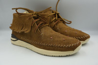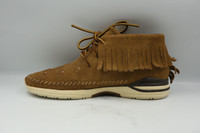 Visvim - 2019 - Maliseet Shaman Mid-Folk (Veg Suede) The vegetable-tanned Swedish fabrics bring the true essence of leather into the fold; distinguishing the moccasin construction with extra texture and a sturdy, masculine build. Truly authentic, the Shaman hosts beaded details across the forefoot with a branded heel patch in tow, while the modernised sole enhances each step with Visvim® technology. *Vegetable-Tanned Suede Uppers *Vegetable-Tanned Bovine Leather Lining *Moccasin Construction *Fringed Collar *Branded Tongue Label *Beaded Detail *TPU Heel Stabiliser *Natural Cork Footbed *Vibram® Rubber Outsole Tagged Size: 9 Condition: 9/10 Flaws: Cracking on Heel Tabs of 1 Shoe, Minor Sole Sep Made in: China SRP: $689 CAD TAKE NOTE: 1. Be mindful that this piece has led a previous life, and may tell its story through minor imperfection. 2. See measurements written in the description 3. In some rare cases, customs duty may be charged, but in that case, please pay by yourself Courier: DHL Express ONLY From: Philippines ETA: 2-4 days from the date of shipment