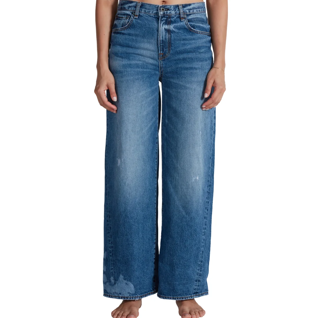 A wide leg jean with a relaxed silhouette and soft structure. The Caribbean in Venice is cut from rigid Japanese denim and features subtle "spot" fading inspired by a vintage pair discovered at the Rose Bowl Flea Market. Cuff it or wear it long — the shape works either way. - High rise - 12" rise / 30" inseam / 24" leg opening - 100% cotton - 11 oz. Japanese denim (non-stretch) - Machine wash cold separately - Do not tumble dry - Made in Los Angeles