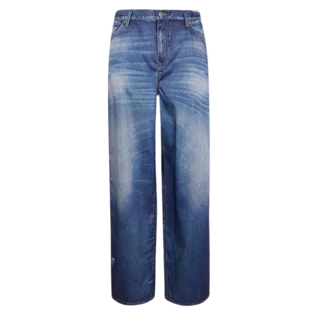 Printed five-pocket trousers Made in Italy - blue - denim print - belt loops - five pockets - double star detail - wide leg - Polyester 100%