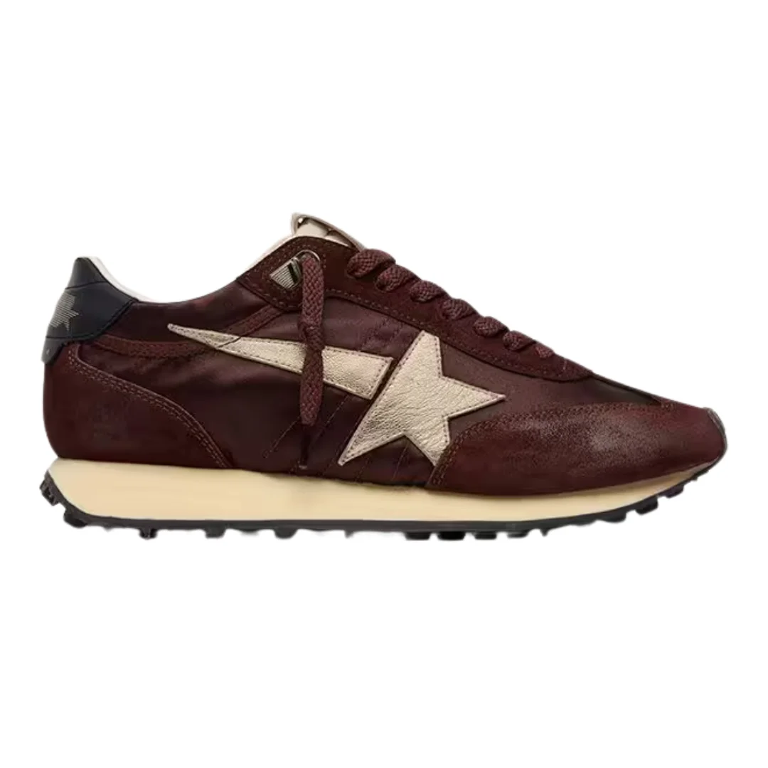 Women's Marathon with burgundy satin upper and platinum leather star