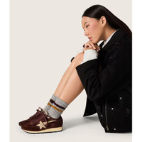 This women's model features a brown satin upper, a platinum metallic leather star and tone-on-tone suede inserts. The look is completed by a black leather heel tab, brown laces, and a starred outsole - Brown satin upper with tone-on-tone suede inserts - Platinum metallic leather star - Black leather heel tab - Brown suede inserts / Brown laces - Upper: 58% polyester, 35% cow leather, 4% textile polyurethane, 3% sheepskin leather - Lining: 72% sheepskin leather, 18% polyester, 10% textile polyurethane - Sole: 100% rubber - Made in Italy