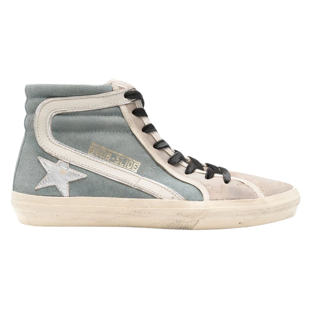 Slide suede sneakers - Made in Italy - light blue/light grey - calf suede - logo-print tongue - logo print to the side - star patch detail - ankle-length - front lace-up fastening - side zip fastening - round toe - branded insole - French terry lining - flat rubber sole