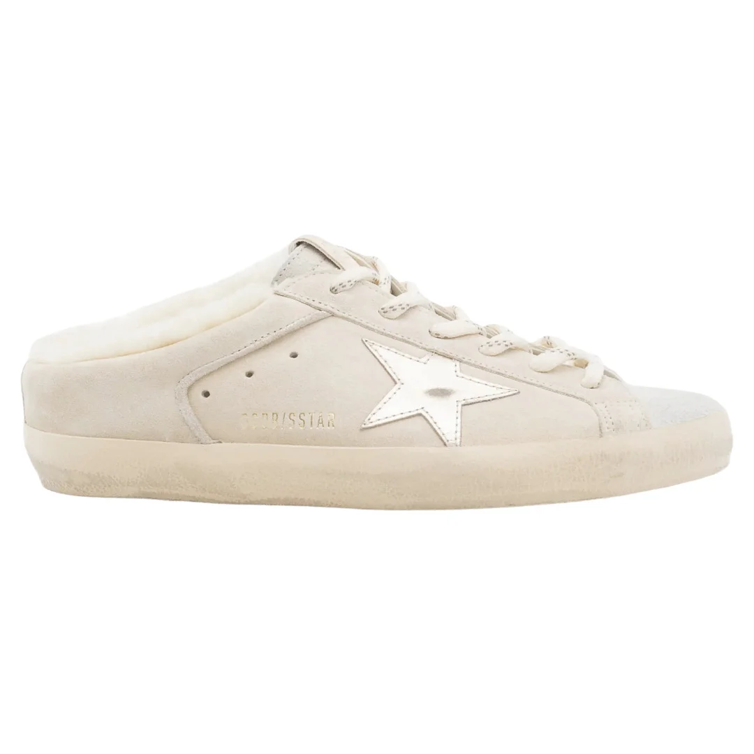 These Super-Star Sabots with a seedpearl leather upper feature a silver leather star and soft shearling lining. - Seedpearl leather upper - Silver leather star - Soft shearling lining - Vintage finish - 160cm white lace - Upper: 100% cow leather - Lining: 100% sheepskin leather - Sole: 100% rubber - Handmade - Made in Italy