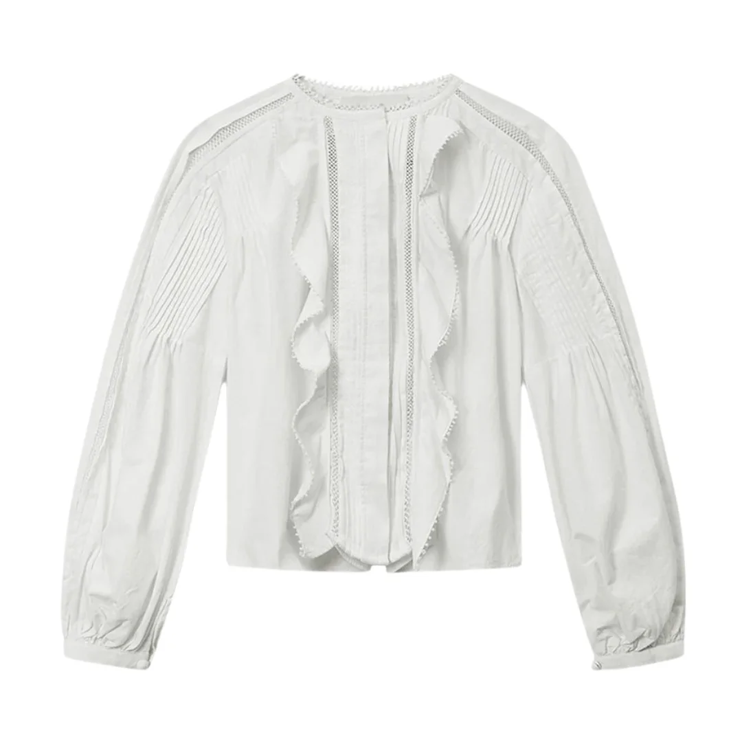 Cubraly cotton blouse - Victorian cotton blouse - Round neckline - Buttoned front with hidden round covered buttons - Long sleeves with tapered cuffs - Frill, fishnet openwork, and crochet finish - Loose fit - 100% cotton