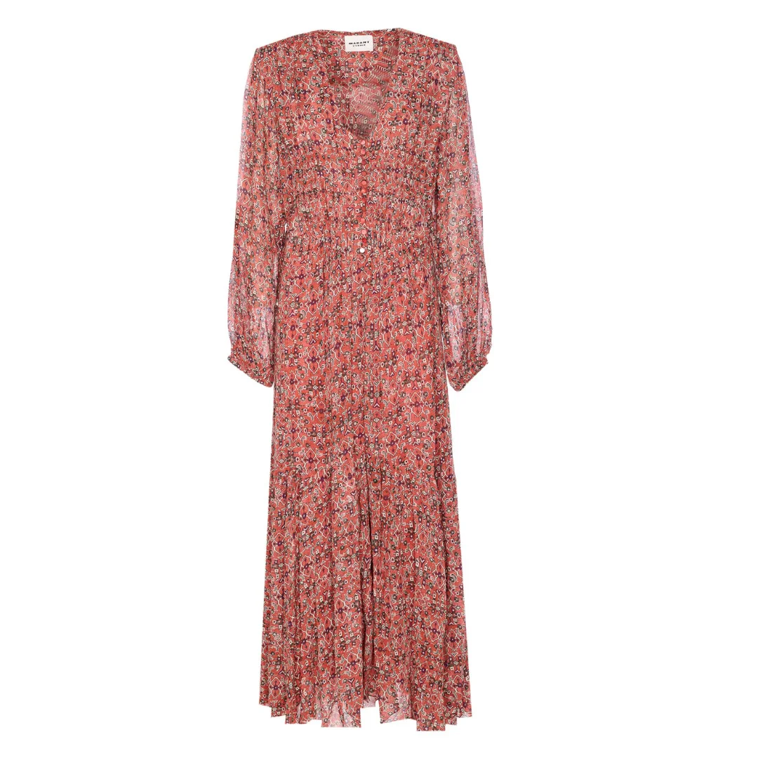 Briane Maxi Dress - Long printed georgette tapestry pattern dress - V-neckline - Buttoned front - Pleated and smocked details - Long gathered sleeves - Thin buttoned cuffs - Fitted drawstring waist - Strings with metal finishes - Relaxed fit with an adjustable waist - 100% viscose