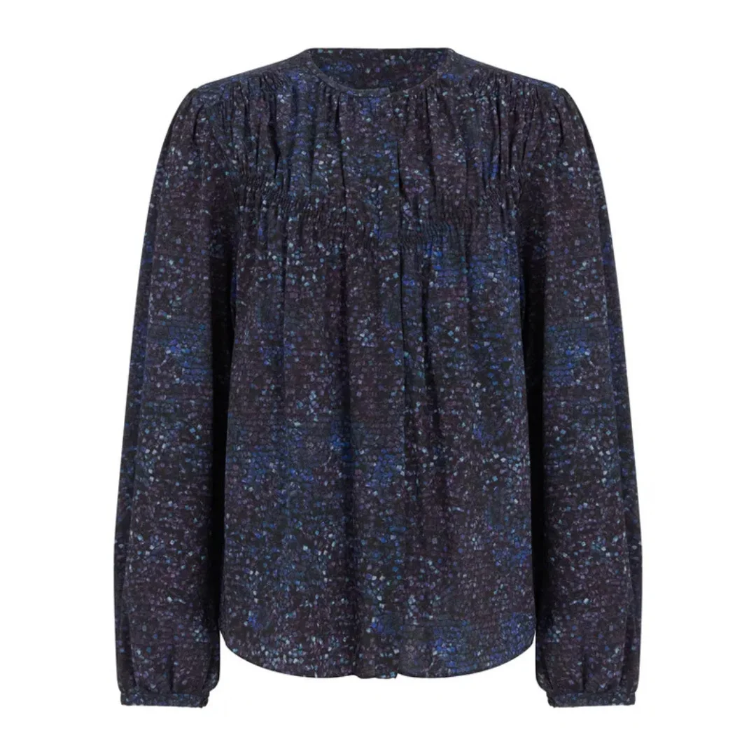 Sally button down blouse - dark purple - scattered print - round neck - Silk 91%, Elastane 9%