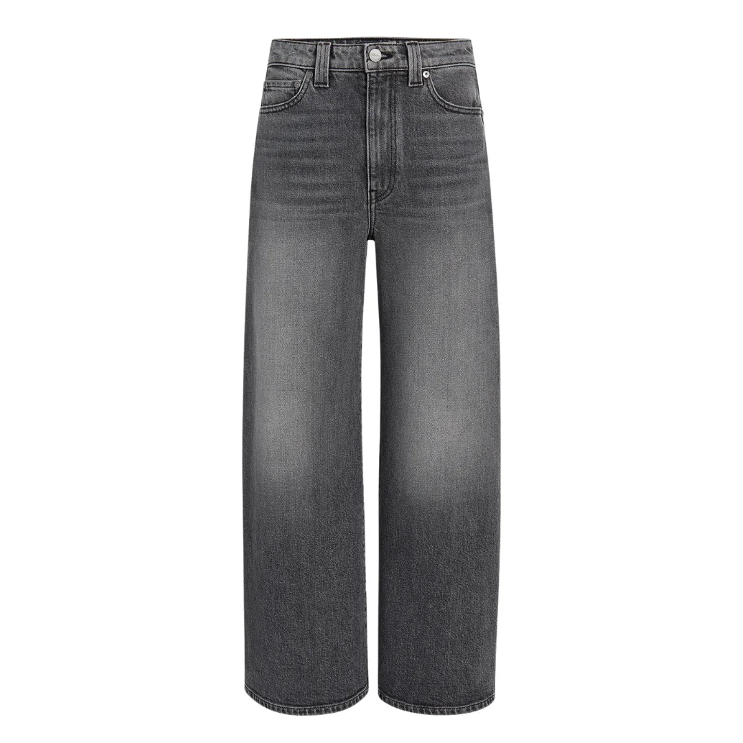 Combining the elegance and ease of wide-leg trousers with the dynamism of a cropped length, this high-waisted silhouette flares gently below the knee and is designed to hit at the ankle. Hand-finished with antiqued nickel button. Stretch black denim (99% cotton, 1% elastane)