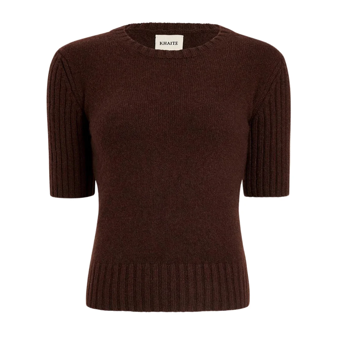 A luscious knit pullover in robust yet compact cashmere. Refined by fisherman's ribbing at the crewneck, short sleeves, and hem. Heritage cashmere (100% cashmere) Color: Rosewood