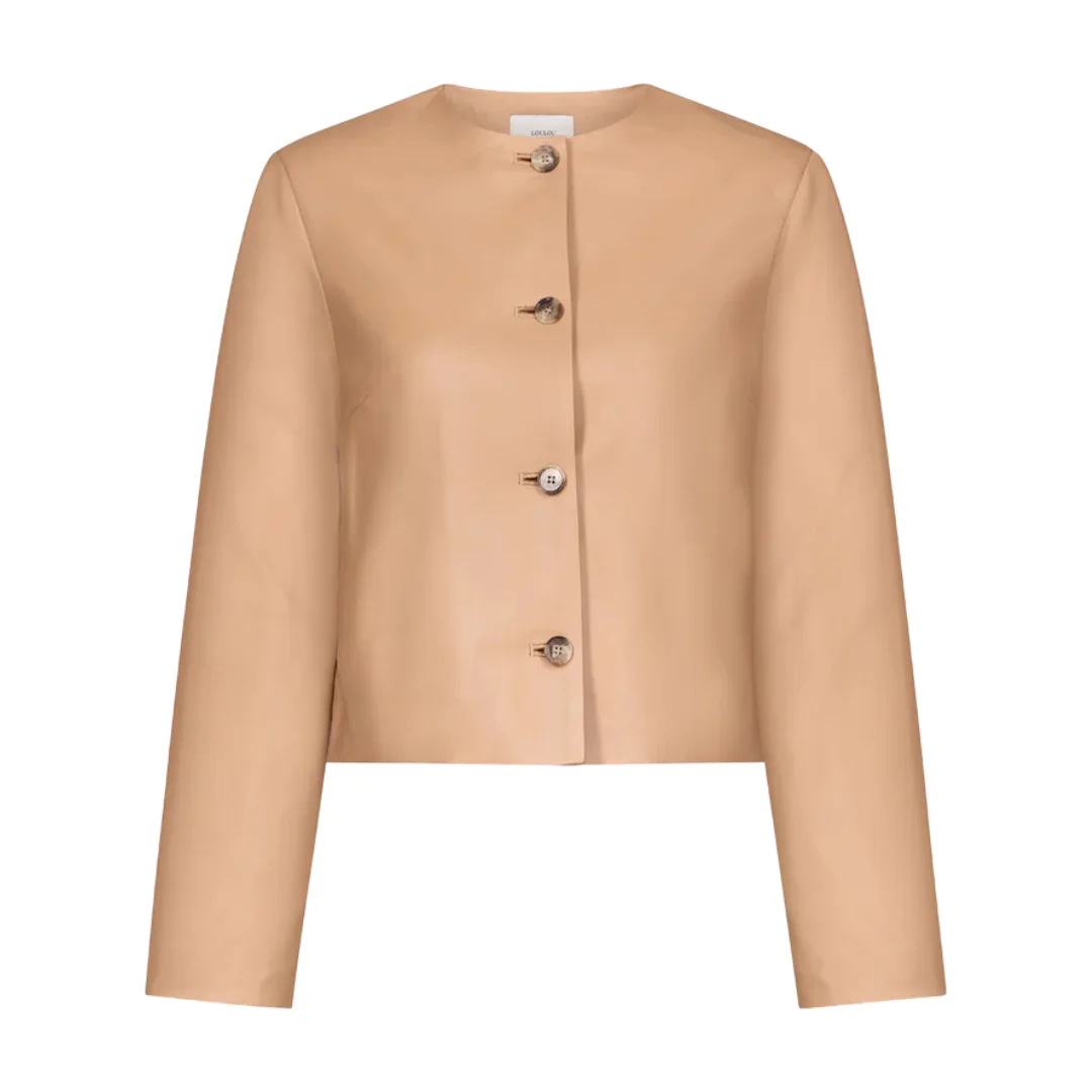 This jacket is made of soft plonge leather. Its slightly cropped, boxy fit conveys a chic, effortless allure. Details are minimal and include a crew neck, long sleeves and a four-button placket. - Composition : 100% LAMBSKIN