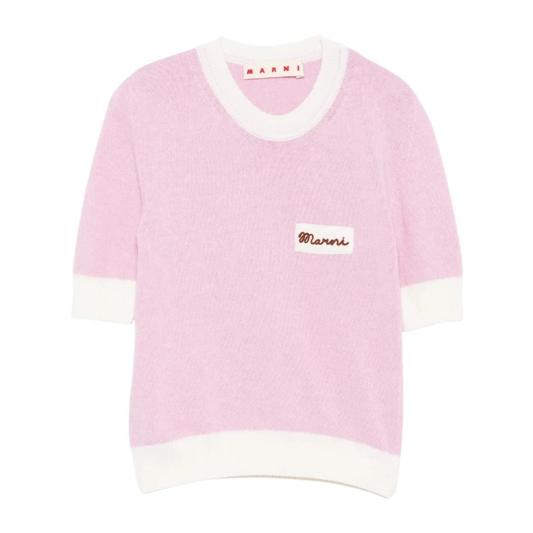 Logo embroidered crew-neck jumper - light pink - embroidered detail - round neck - short sleeves - ribbed hem and cuffs - Wool 80%, Polyamide 20%