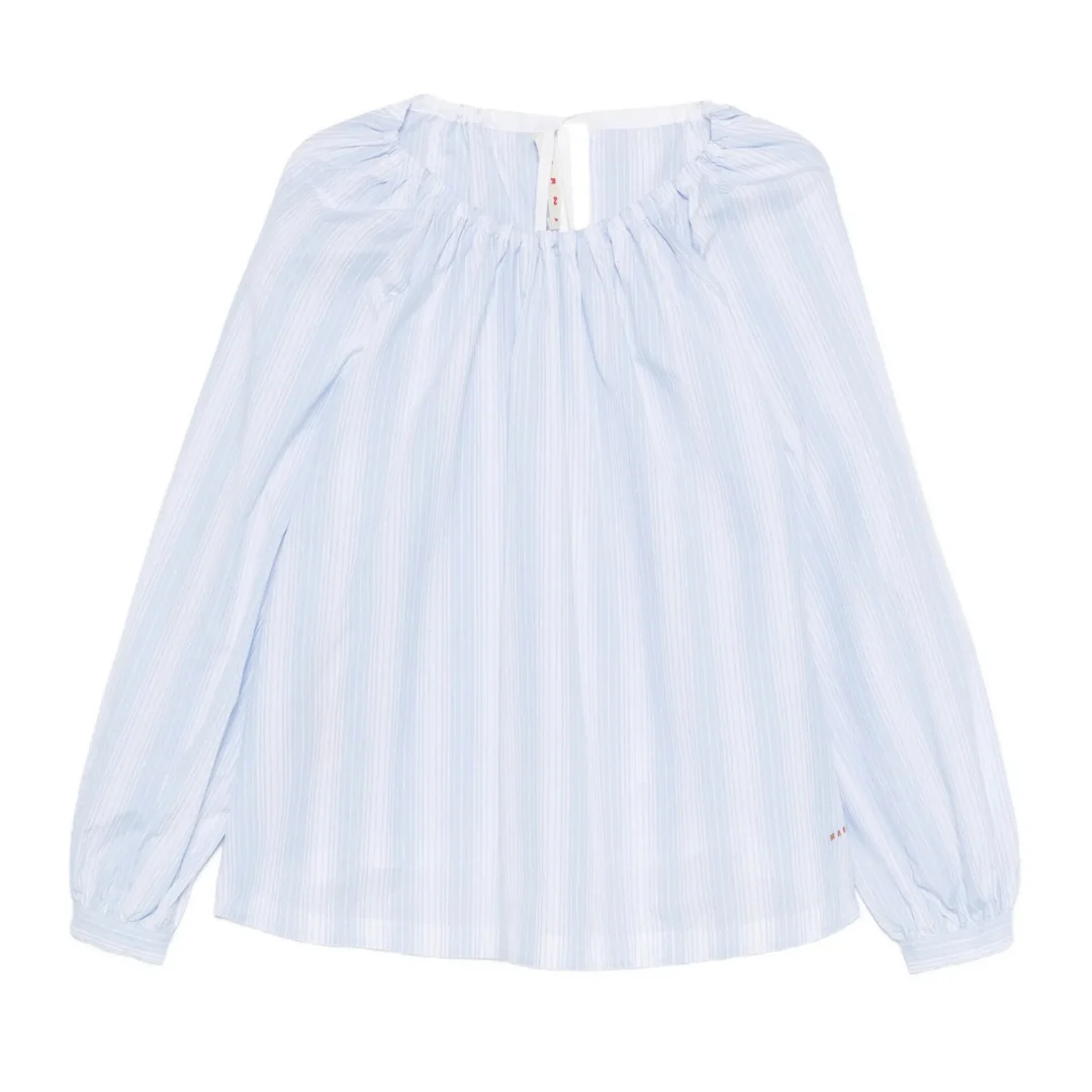 Striped long-sleeved top - light blue - striped - gathered detailing - long sleeves - elasticated cuffs - rear button fastening Cotton 100%