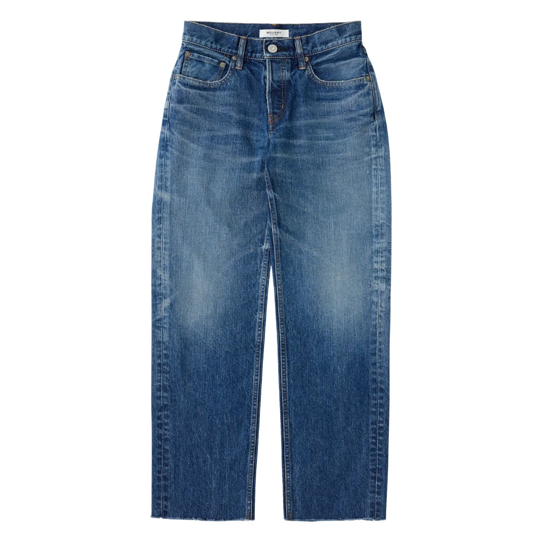 NEEDHAM LOW-RISE STRAIGHT - Low rise - Full length - Heavy weight (non stretch) - Button fly - Body: cotton 100% / Label: Cowhide leather