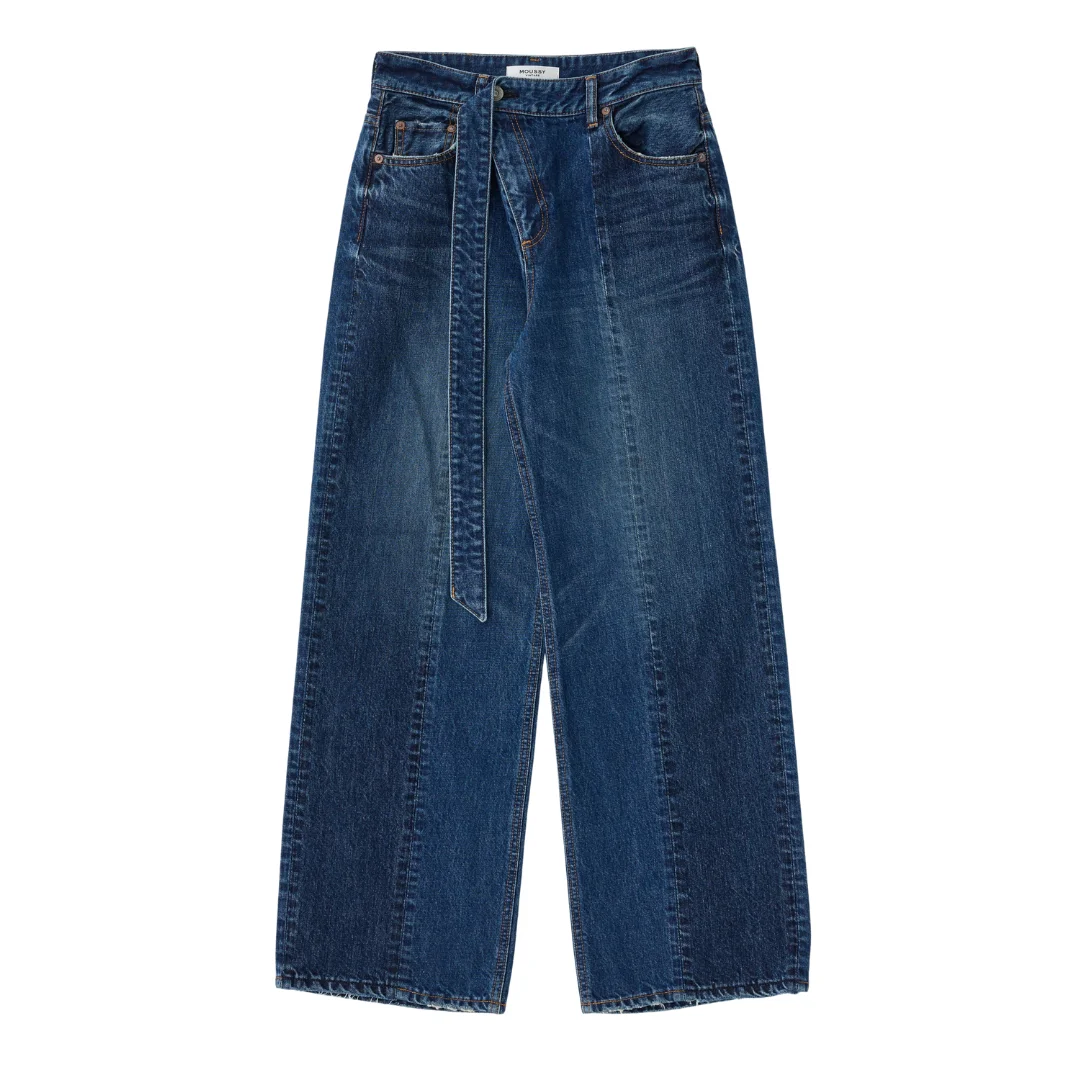 TIOGA BELT DESIGN STRAIGHT - High-rise - Full length - Medium weight denim (non-stretch) - Zipper fly - Body: Cotton 100% / Label: Cowhide leather - Imported, Japan