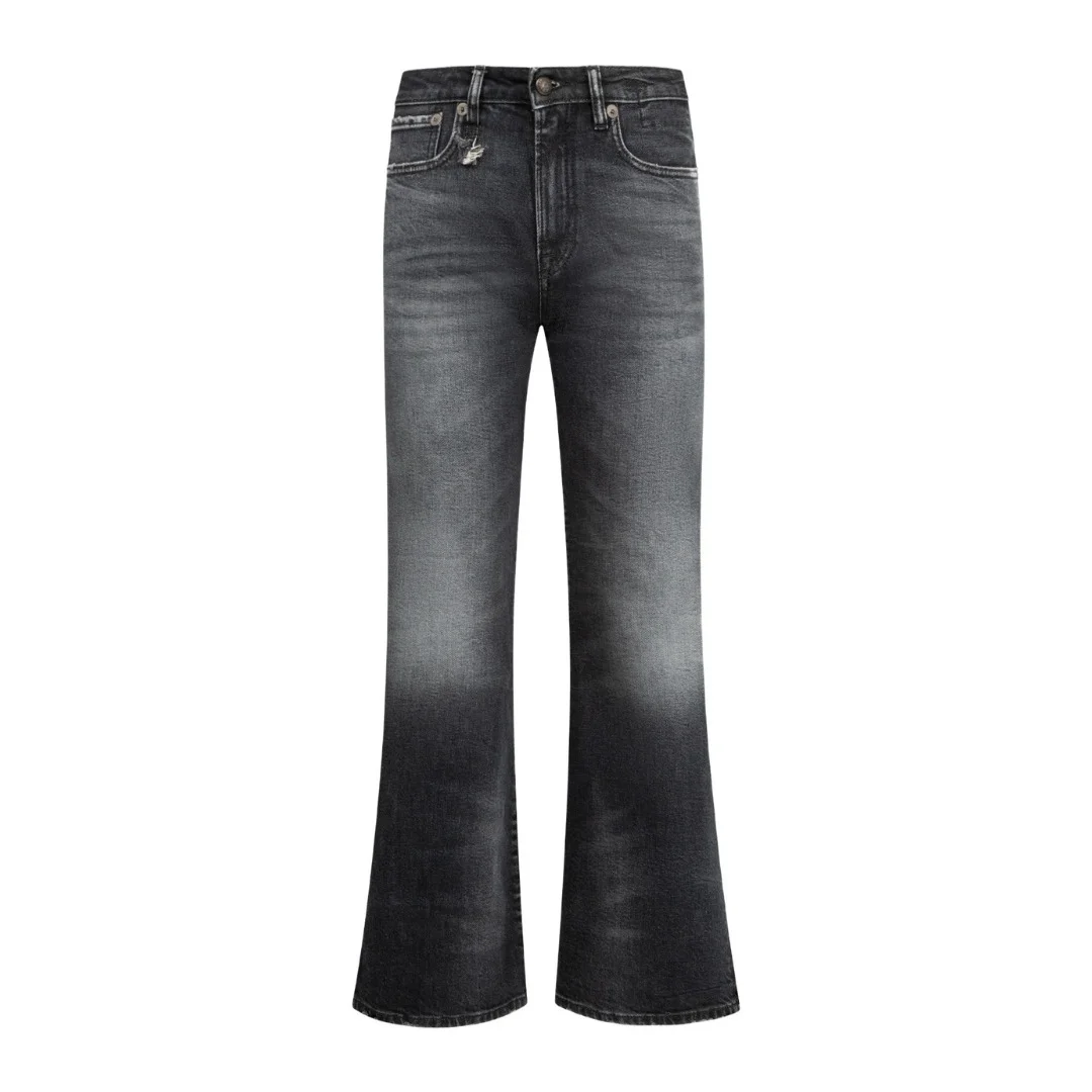 Mid-rise relaxed fit jean with flare detailing from knee to hem made with 12.5 oz black stretch denim and featuring a mid-heavy worn dark black wash with mild grinding throughout local areas. Made in Italy Color: Essex Black Stretch 98% Cotton, 2% Polyurethane