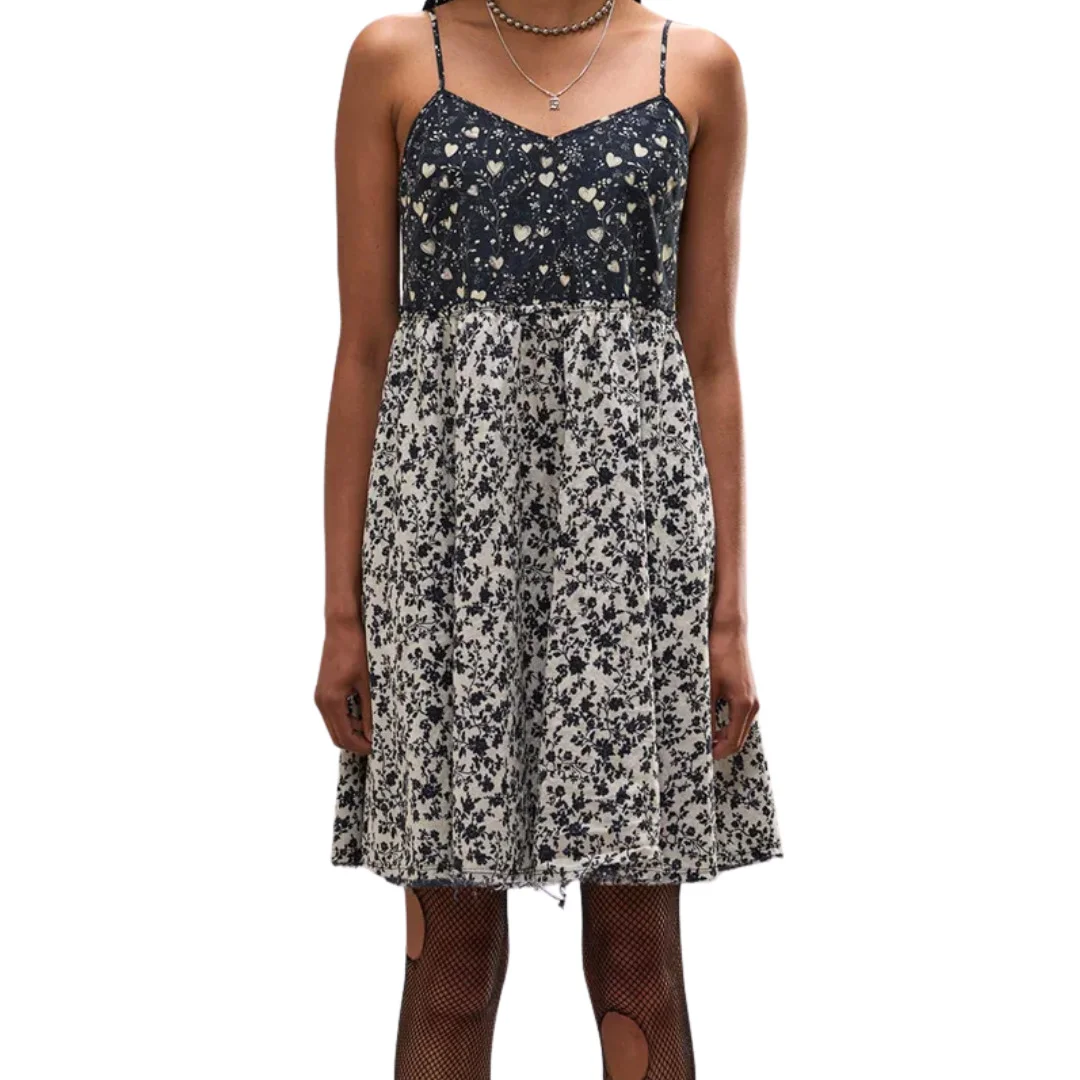 Strappy slip dress built from Italian cotton voile and printed on both sides for reversible styling. Made in the USA Color: Black Floral Mini Hearts 100% Cotton
