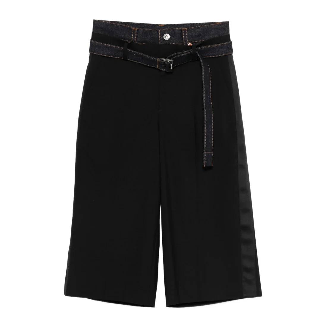 Suiting x Denim Pants - black - belt detail - button fastening - Outer: Cotton 100%, Polyester 70%, Wool 30% - Lining: Cupro 100%