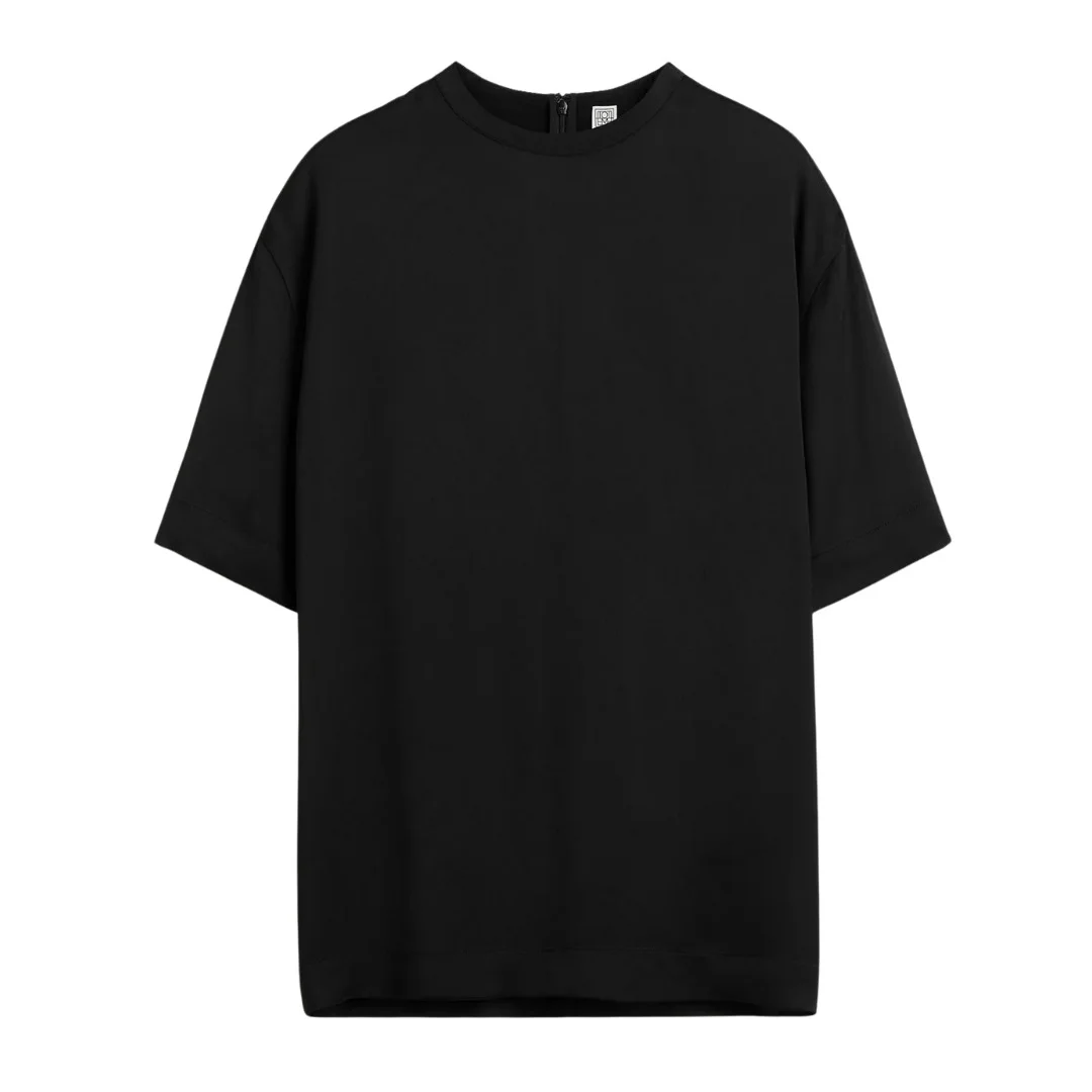 This top marries the effortlessness of a crew-neck tee with the refinement of a satin blouse. Pair the relaxed, straight silhouette with tailoring as part of a day-to-evening look. - Black - 100% viscose