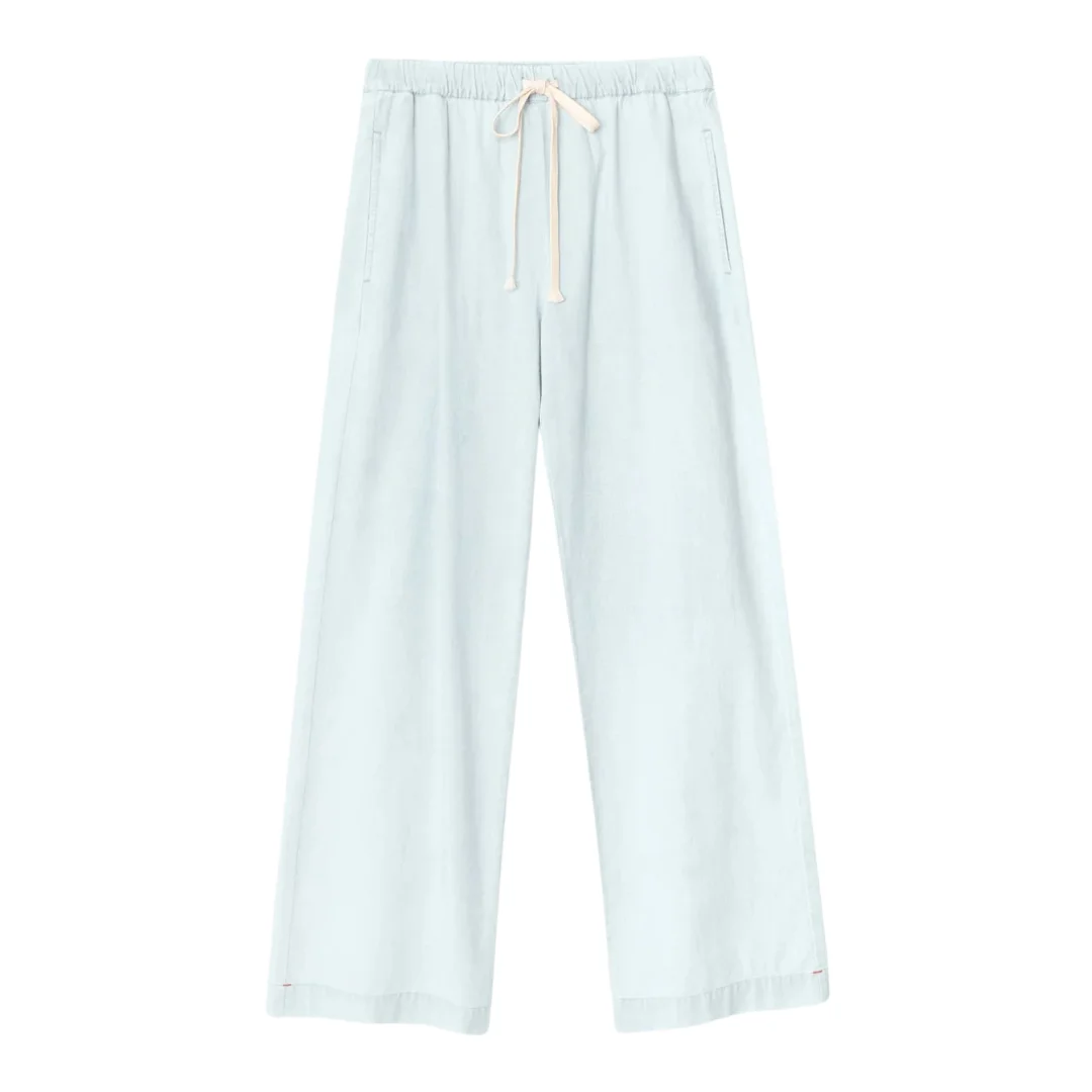 Dash is made in Xirena's lightweight, soft-woven cotton chambray in a classic light blue wash. Dash is an easy straight leg pant with an adjustable drawstring waist, side stripe, and side seam pockets. - Fabric: Decker Chambray | 100% Cotton - Designed in Los Angeles