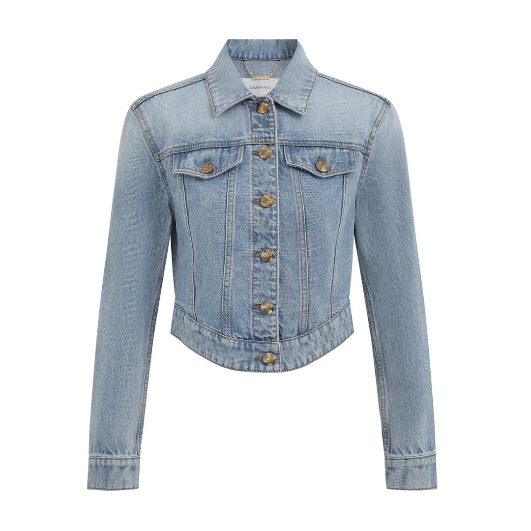 The Lucky Fitted Denim Jacket in Skylark. A denim jacket featuring a fitted, cropped silhouette with buttons down the centre front and a curved hem and shorter back. - Denim fitted jacket with cropped back - Long sleeves with buttoned cuffs - Classic collar - Buttons down the centre front - Patch pockets - 100% cotton