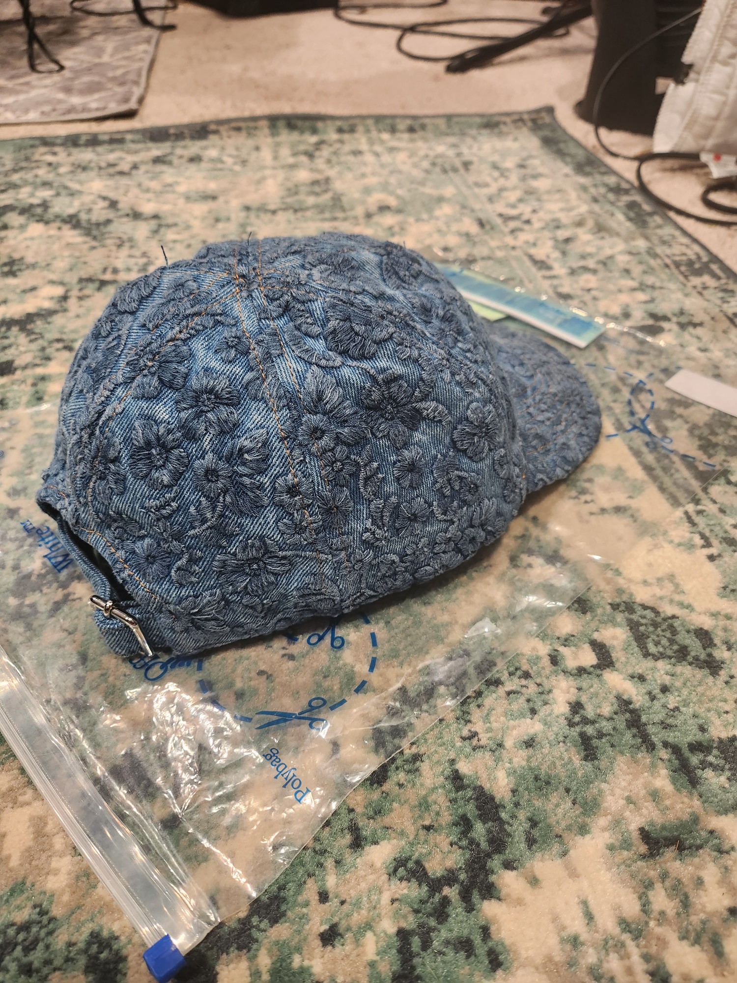Off-White Embroidered Floral Hat