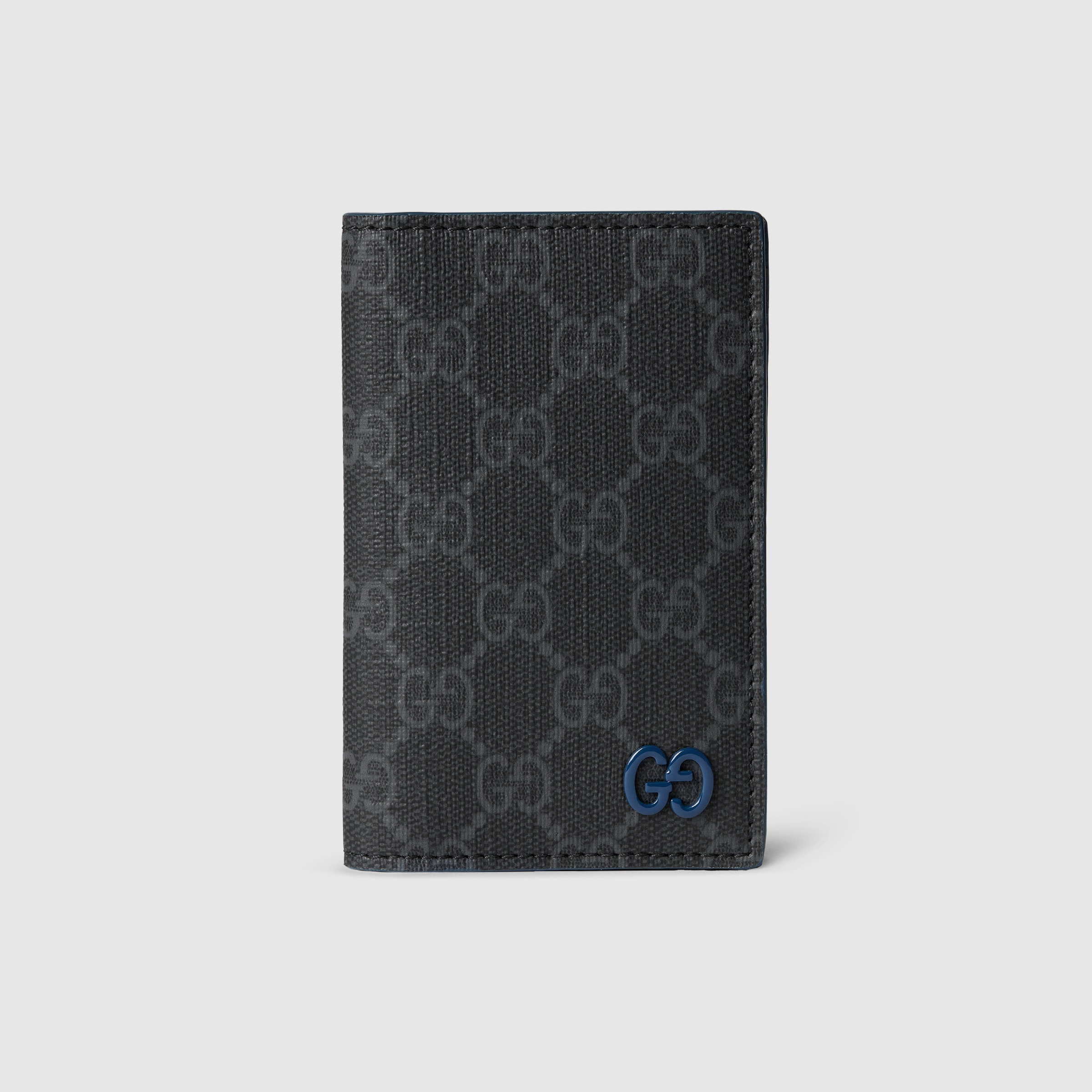 This long card case is presented as part of the Pre-Fall 2025 collection. Crafted from GG Supreme, it reveals a a contrasting leather interior and a ceramic-effect GG detail. - Black GG Supreme - Blue leather interior - Brass hardware with blue ceramic-effect finishing - GG detail - Inside: 8 card slots, 2 hidden compartments - Outside: 1 card slot - Open: 5.9"W x 4.7"H - Closed: 2.9"W x 4.7"H - Made in Italy - Weight: 0.18lbs approximately