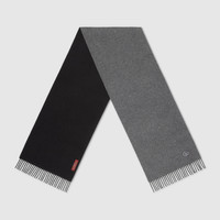 The Pre-Fall 2025 silk accessories collection animates House codes through sophisticated trimmings, logo patches and subtle embroideries. This cashmere scarf is enriched with a Double G leather patch and a fringe trim. - Dark grey and black cashmere - Fringe trim - Double G leather patch - 13.7"W x 74.8"L - Made in Italy