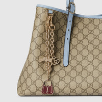 The Pre-Fall 2025 collection introduces accessories that speak to the House's signature themes. This bag charm reveals a chain with Double G, Jackie handbag and dragonfly-shaped charms. - Gucci Rosso Ancora red enamel - Light gold-toned hardware - Double G - Jackie handbag shape - Dragonfly shape - Hook closure - Length: 11.8" - Weight: 0.2lb, approximately