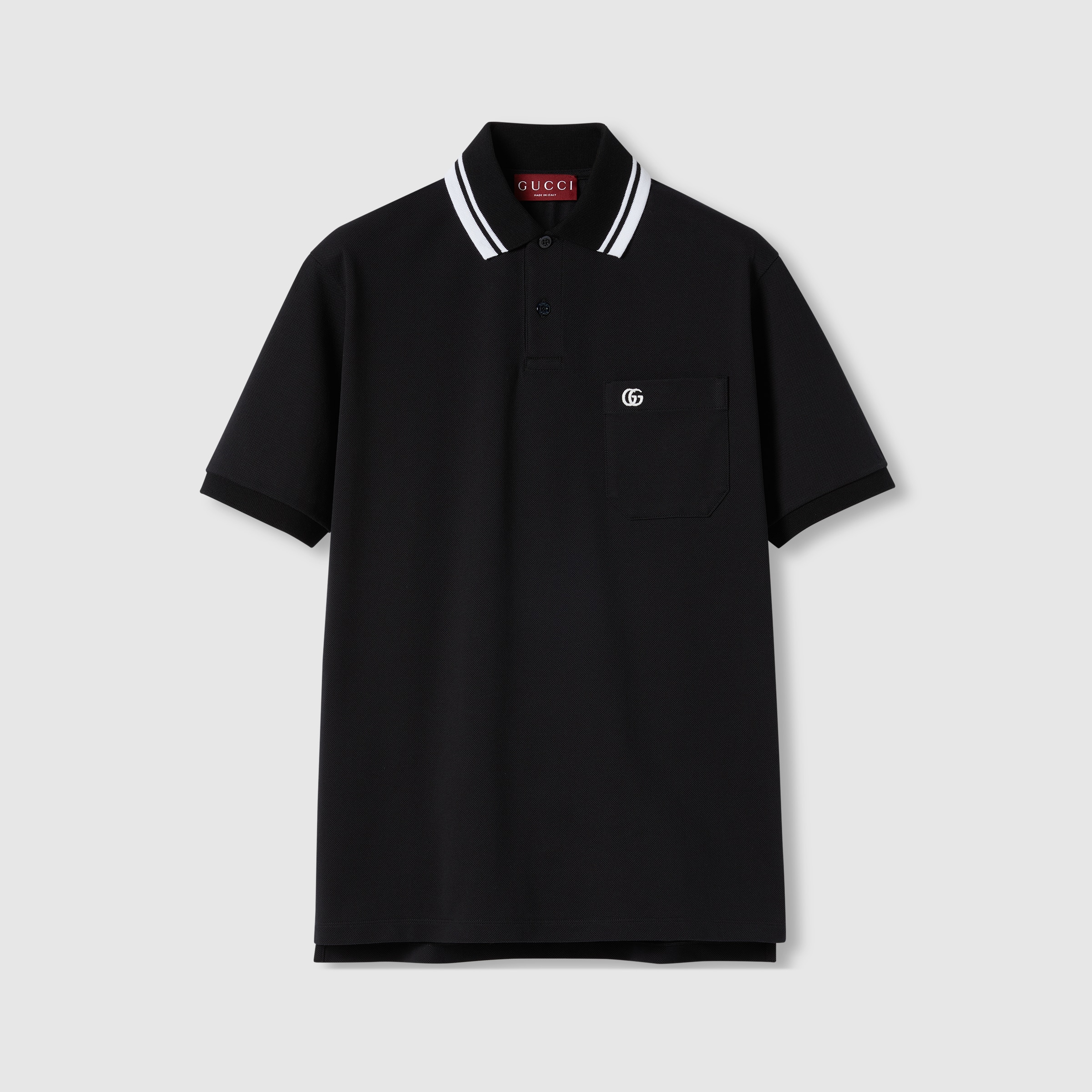 Classics such as soft knitwear and polo shirts throughout the Cruise 2025 collection stand out with subtle details that elevate everyday looks. This regular fit polo shirt is presented in a stretch cotton piquet and enriched with a contrasting Double G embroidery. - Black stretch cotton piquet - Double G embroidery - Polo collar - Dropped shoulder - Short sleeves - Chest pocket - Rib trim - Button closure - Regular fit - Length: 29.5"; Shoulder: 18.7"; Chest: 22.4"; Sleeves length: 9.4"; based on a size M - Made in Italy - The model is 6'1" and is wearing size small