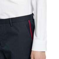 The Pre-Fall 2025 collection perfectly blends versatile textures and sophisticated detailing. This pant is presented in dark blue cotton twill and enriched with a Web detail on the pockets. - Dark blue cotton twill - Web detail on pockets - Belt loops - Side pockets - Back pockets - Button and zip fly closure - Made in Italy - Fabric: 100% Cotton - Details: 100% Polyester - Pocket lining: 100% Cotton