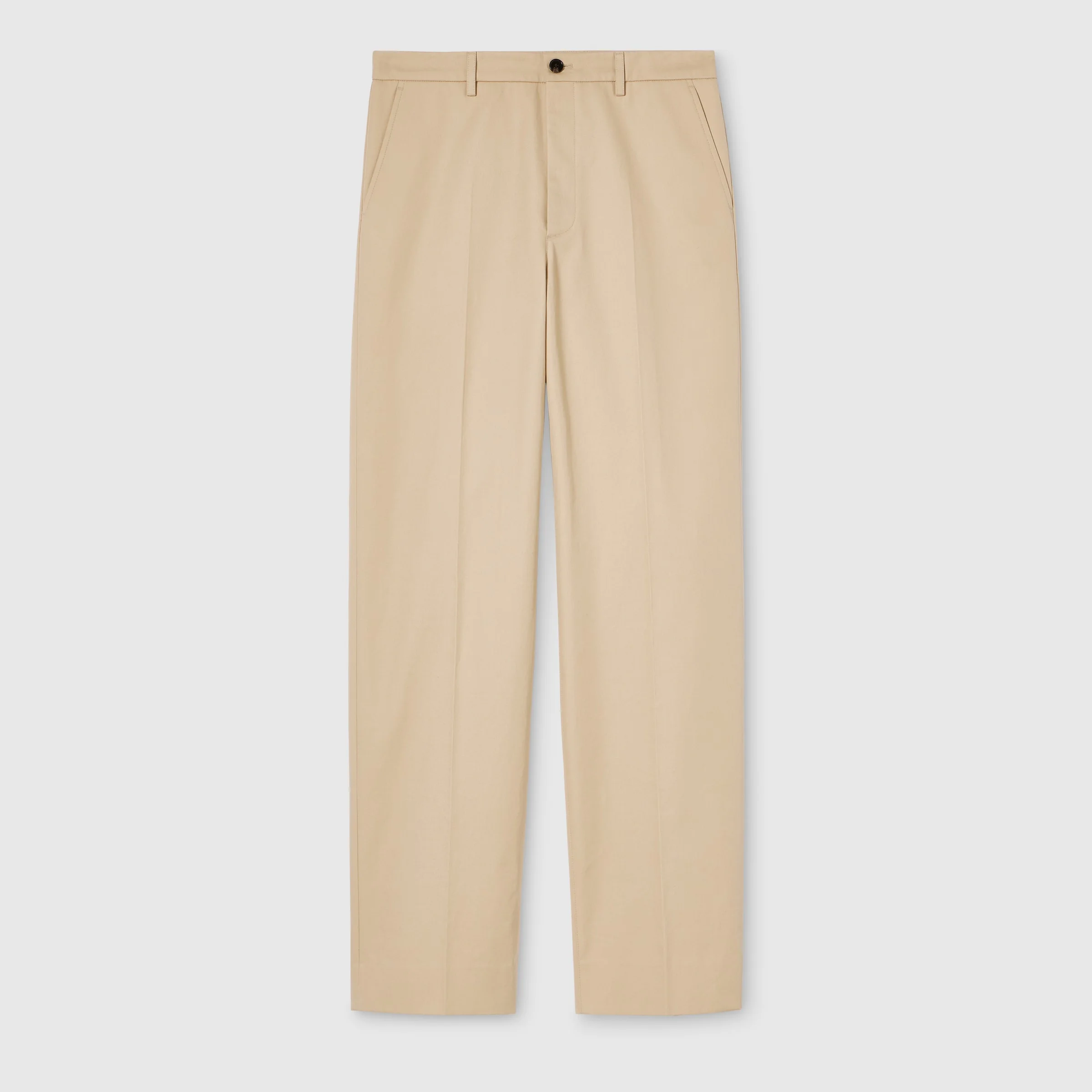 Introducing Spring Summer 2026. This style is part of the La Famiglia collection, which reinterprets the House’s codes through singular personalities and distinctive aesthetic attitudes. Crafted from cotton twill, this pair of pants is enriched with a Gucci crest embroidery. - Sand cotton twill - Gucci crest embroidery - Belt loops - Side and back pockets - Front button and zip closure - Length: 46.4"; Leg opening: 9.8", based on a size 44(IT) - Made in Italy - Fabric: 100% Cotton - Pocket lining: 100% Cotton - Embroidery: 100% Polyester