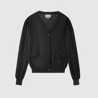 Versatility is key to the Pre-Fall 2023 collection, transitioning from weekdays to weekends with ease. This soft cardigan is presented in a striking black fine wool and enriched with a GG crystal embroidery. The dropped shoulder creates a relaxed silhouette, making for a playful piece that can be styled in endless ways. - Black fine wool with GG crystal embroidery - V-neck - Dropped shoulder - Long sleeves - Two front pockets - Rib trim - Sleeve Length: 23,8" - Length: 25,9" based on a size M - Made in Italy - The model is 5'7" and is wearing size small - Hem Width: 16,1"