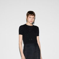 Versatility is key to the Pre-Fall 2023 collection, transitioning from weekdays to weekends with ease. This soft top is presented in a black fine wool and enriched with a GG crystal embroidery. A cropped length offers a relaxed element into the mix, making for a playful piece that can be styled in endless ways. - Black fine wool with GG crystal embroidery - Crewneck - Short sleeves - Rib trim - Sleeve Length: 7,28" - Cropped length - Length: 16,9" based on a size S - Made in Italy - The model is 5'7" and is wearing size small - Hem Width: 14,5"