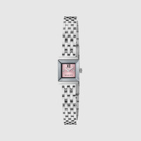 Defined by an elegant square shaped case, the G-Frame collection blends heritage details with a contemporary aesthetic. Crafted from a stainless steel case, the accessory is further enriched with a pink dial with diamonds and a stainless steel bracelet. - 14x18mm stainless steel case - Pink dial with dimonds - Sapphire glass with antireflective coating - Stainless steel bracelet - The warranty certificates for Gucci watches purchased after March 1st 2022 are exclusively available online. - Download your certificate at - by using the serial number engraved on the back of your watch. - Quartz movement - 3 ATM (98 feet/30 meters) - YA128539 - Wrist size from 5.5" to 6.9" - Swiss Made