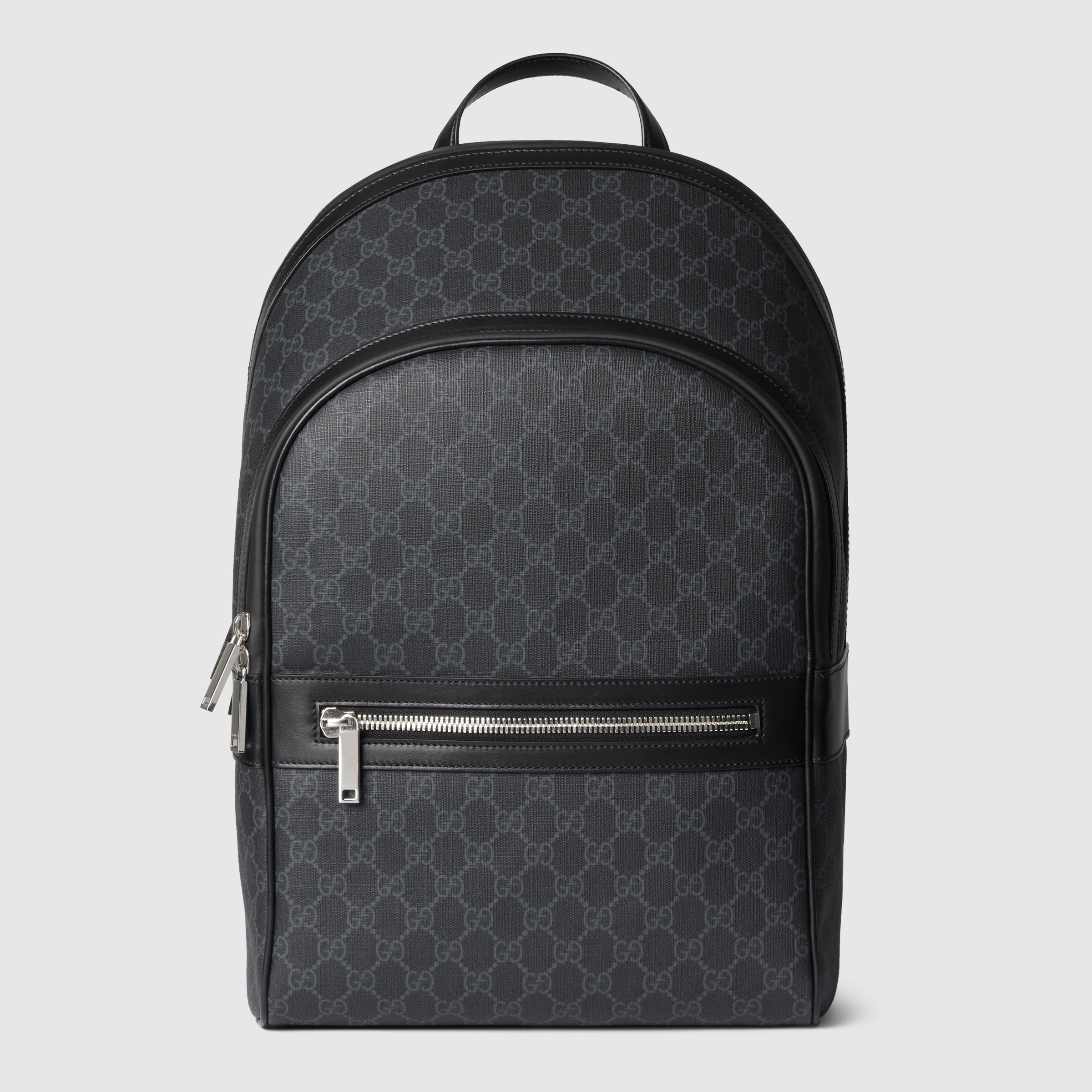 The signature GG Supreme canvas remains an evergreen of the House thanks to its soft and malleable qualities. Crafted from a coated microfiber fabric, here it appears in an all black variation to define this backpack. A tonal leather trim completes the style, while a pop of color appears in the form of the archival Web stripe. - Black GG Supreme canvas - Black leather trim - Blue and red Web - Cotton linen lining - Adjustable Web shoulder straps - Padded mesh back - Outside: 1 front zip pocket - Top handle with 2.1" drop - Zip closure - 11"W x 17.3"H x 6.1"D - Made in Italy