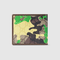 Vibrant camouflage in distinctive colors reinterprets the emblematic GG motif. Crafted from a marbled GG Monogram coated fabric, this bi-fold wallet features a Double G detail. - Green and yellow camouflage marbled GG Monogram coated fabric - Brown leather trim - Palladium-toned hardware - Brown taffeta lining - Double G - Web detail - Inside: 8 card slots, 1 bill compartment and 2 internal flat pockets under card slots - Closed: 4.3"W x 3.5"H; Open: 8.2"W x 3.5"H - Weight: 0.2lb, approximately - Made in Italy