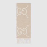 For Cruise 2024, the House's monogram is revisited and reimagined in new variations. The historic motif decorates this camel and white cashmere scarf. A tassel trim completes the accessory. - Camel and white GG cashmere lamé jacquard - Tassel trim - 17.7"W x 78.4"L - Made in Italy
