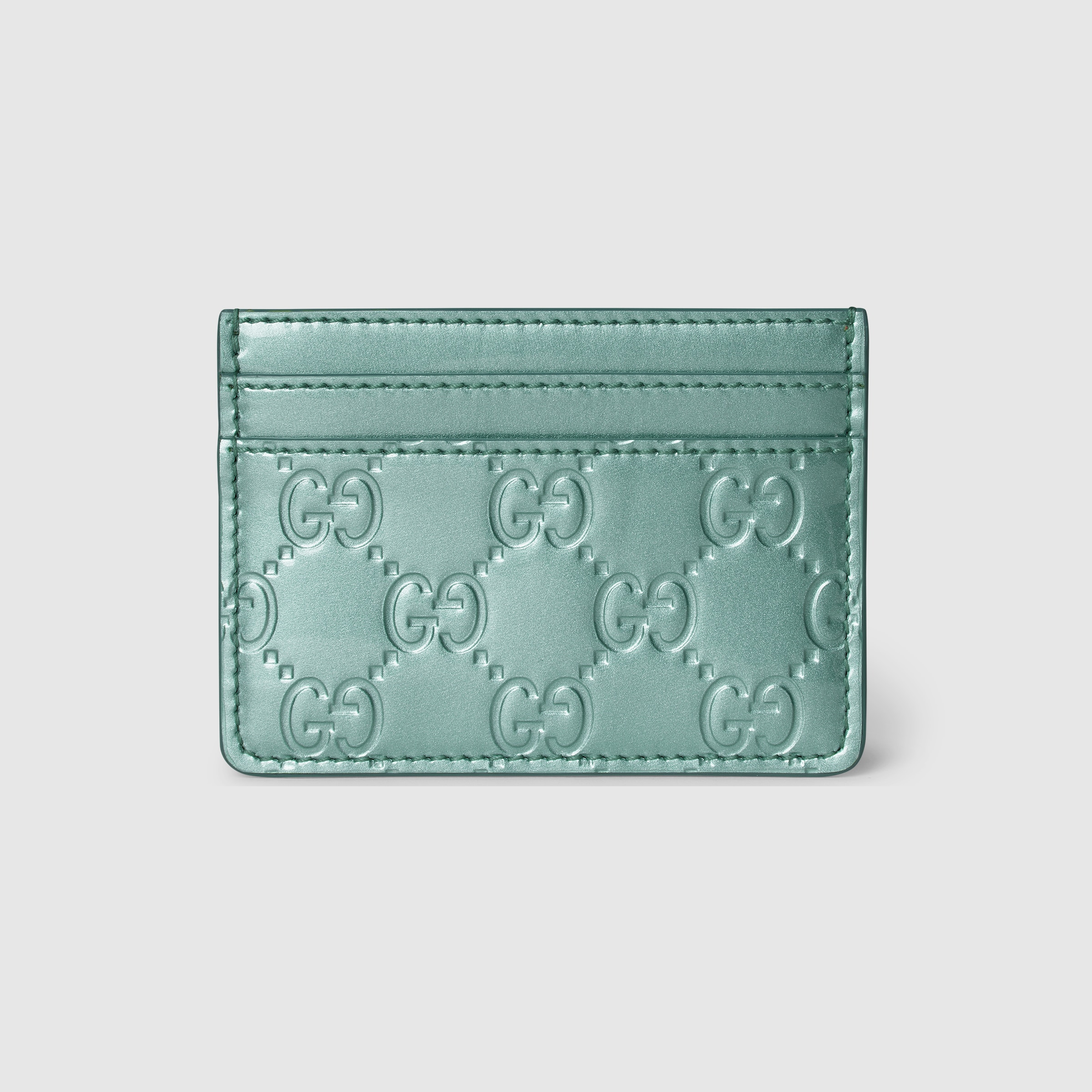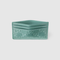 In the Fall Winter 2025 collection, the GG Emblem collection reinterprets the House’s history of elegance and craftsmanship. This card case highlights its functional design with four card slots and one open pocket. - Light blue patent GG leather - Gold-toned hardware - Four card slots, one open pocket - 4"W x 2.5"H - Weight: 0.14lbs approximately - Made in Italy
